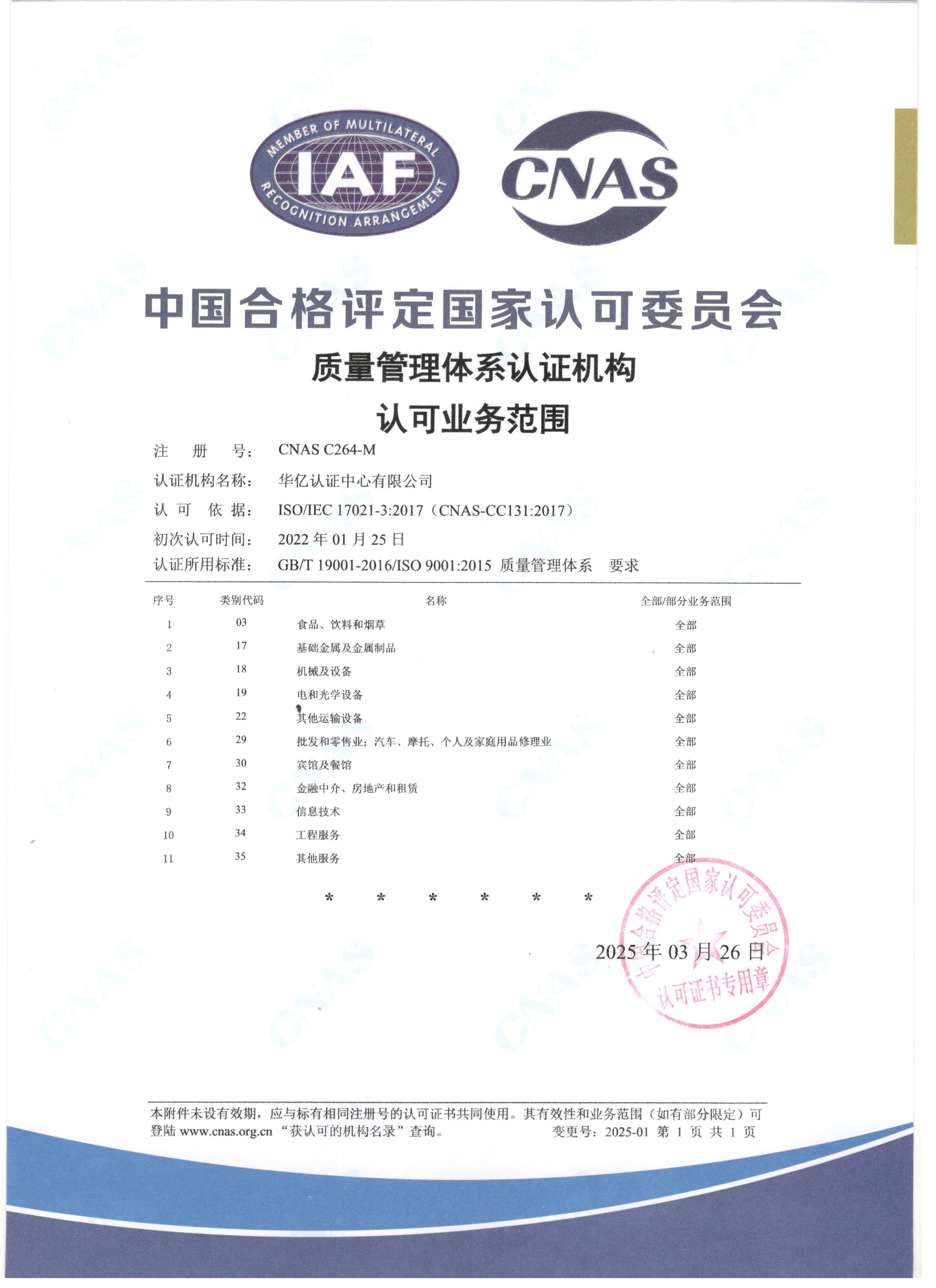 华亿认证中心EMS、OHSMS通过CNAS扩项评审!